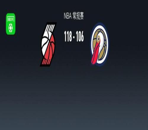 开拓者118106逆转鹈鹕,阿夫迪亚26+8+7,霍勒迪27+9,锡安15分